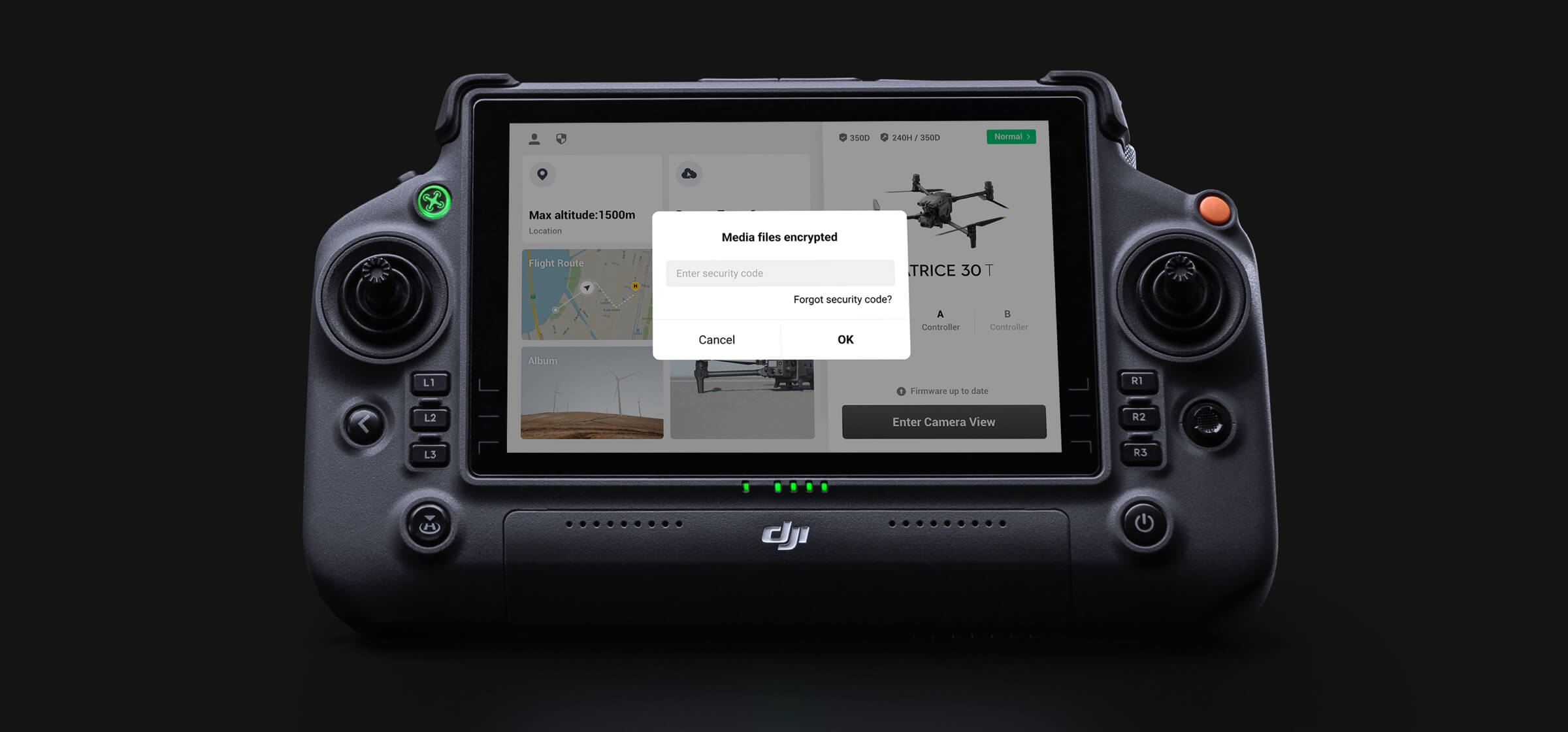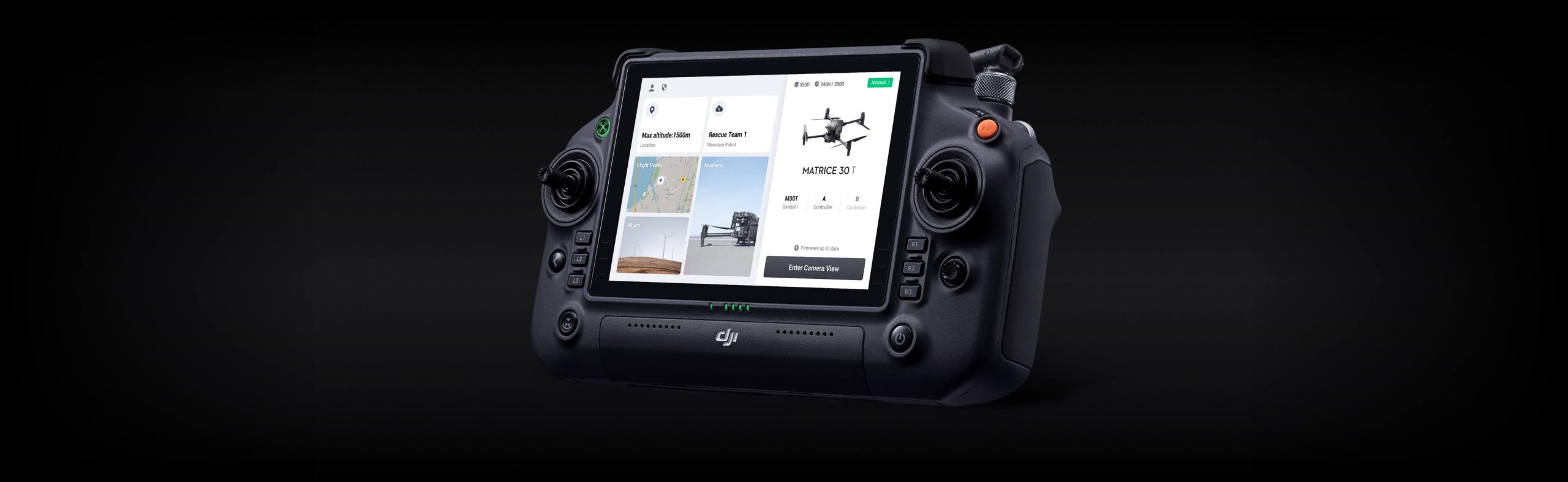 The 7-inch widescreen DJI RC Plus with dual control mode is tailor-made for Enterprise users